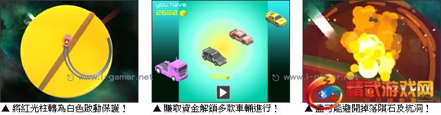 在移动的过程中,车辆可能会被抢先抵达的几颗陨石击中或是摔进深坑造成爆炸,若使用过长的时间,星球的尺寸也会逐渐缩小,甚至最后消失成为尘埃,玩家可要多多注意喽!而为了丰富游戏性,製作者也添加了许多可爱的小汽车要让玩家选用,解锁的方式很简单,只要成功拯救星球,就能获得必须的奖金啦!喜爱挑战操控技巧或反应力的玩家,现在就来体验一下这款小品游戏吧!