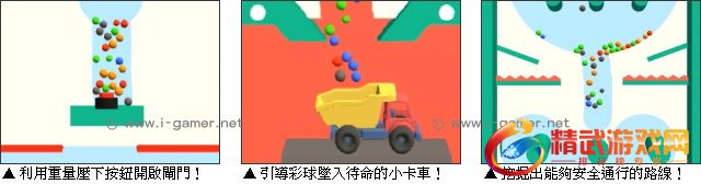 另外,目前小卡车停放的位置是一个高台,所以若彩球掉落的数量不够多,负重没达到能够降下甚至压平道路的程度,那么小卡车也会无法开动,顺利出发呢,玩家可得留意下啦!高达 100 个精心设计的关卡,聪明的你能突破到哪个阶段呢?现在就来挑战一下吧!