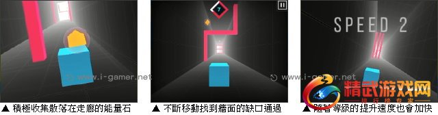 另外,游戏提供了经典和无尽模式,前者玩家需要让方块碰触收集散落廊中的能量石,才能在累积一定数量之后获得晋级!而在无尽模式里,方块行走的距离越远,移动的速度也会逐步提升,将难度大幅拉高!究竟在你的控制下,我们的方块会表现得如何呢?现在就来尝试一下吧!