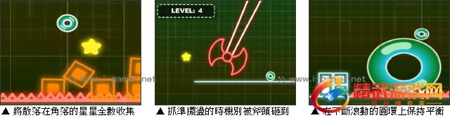 该是发挥反应力及手指灵巧的时刻了!在《滚动霓虹球》游戏中,玩家需要操控一颗散发着幽幽光芒的小圆球,在霓虹色光芒的道路上前进!而将路上看见的星星通通收集是让它除了抵达终点,将旗升起外,获得荣誉感的唯一方法!