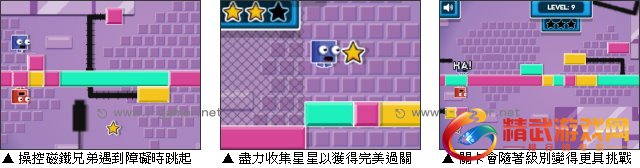 又到了测试反应力的时候啦!在《磁铁兄弟》这款游戏中,玩家需要同时操控两块磁铁,帮助它们跳跃避开各种阻碍,并且尽力收集散落的星星以获得完美通关!要注意的是,关卡会不断往前推,稍一迟疑动作慢了或让磁铁卡住,可是会毫不留情,瞬间掰掰的唷!现在就舒展一下你的手指,绷紧神经开始挑战吧!