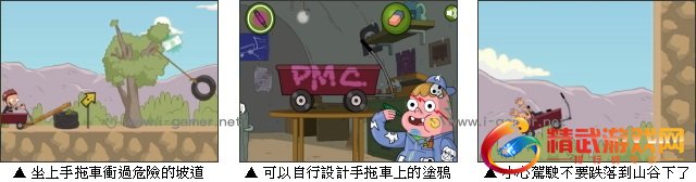 鲁莽的苏摩斯基参加了一个危险至极的手拖车游戏,他需要坐上自己的手拖车冲下充满障碍甚至是裂谷的坡道,然后其他人在路上放满了各种奖品,现在他需要在这要命的极速游戏中蒐集路上的各种物品,并使自己安全的到达下坡的终点。游戏中获得金钱后可以进行速度与跳跃能力的升级,也可以为自己加装灭火器作喷射装饰使用,也可以自行对手拖车进行涂装。带着这个笨蛋安全地走向终点吧