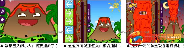累积已久的小火山即将要爆发了,现在它就差最后几个步骤就能完成喷发动作,而这些步骤将由你来执行。游戏中玩家要利用方向键完成排列操作,加速火山的板块运动,并在限定的时间内累积一定的能量就能进入下一关,越后面的难度也越高。喜欢挑战刺激的玩家绝对不可错过喔!