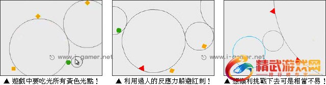 小圆圈大挑战是一款考验眼力与反应力的敏捷游戏。玩家需要操控小绿点在圆圈中不断的奔跑,过程中要吃到黄色光点并躲避红色尖刺,看準适当时机就能穿越到另一个圆圈。想顺利挑战下去可是非常不容易的,玩家们快来挑战看看吧!
