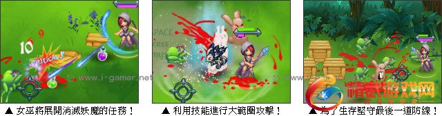 游戏操作:以键盘 ↑↓←→ 键或 W、A、S、D 键操控女巫移动,以滑鼠操控射击,空白键选择技能,ESC 键暂停。