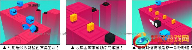 「超能收割」是一款非常考验反应力的敏捷游戏,游戏中玩家将操控黑色小方块不断向前奔跑,通过跳跃来避开陷阱,并收集金块和击杀蓝色怪物获得高分解锁新成就。想要顺利挑战下去可是非常不容易的,玩家们也赶紧来挑战看看自己可以通过多少格吧!