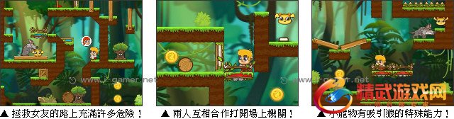 乔和女友来到了巫师的店里,并从巫师手中解救出小动物莫莫,没想到巫师却劫持走乔的女友,十分着急的乔将与小动物莫莫将展开解救女友的冒险。游戏中需要两人互相合作,像是莫莫的能力吸引狼的注意力,玩家需要巧妙的闪避陷阱并触发机关来通过关卡。聪明的你快来帮助乔和莫莫通过关卡,顺利拯救女友吧!