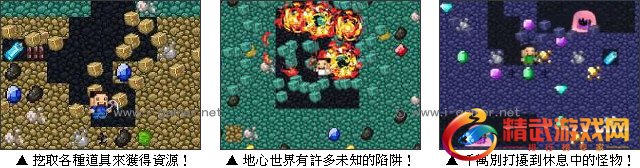 地底下埋藏了许多矿石与未知资源,这次主角将化身为挖地工人,展开地心世界的冒险探索之旅。游戏开始要先探测地底下是否有宝藏,再进行开挖动作,过程中随时注意电钻的能量与挖掘工具,这可是有限制的,结束后还可以拿挖取到的宝石到商店里提升道具功能喔。玩家们快来与主角一同挖掘出地心世界的秘密吧!