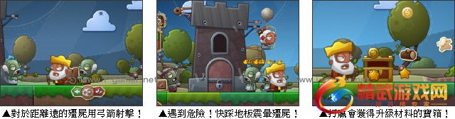 国王大战殭尸中文版来啦!就在国王失蹤一天后回到城堡时,发现城堡周围已经被殭尸给团团围住。国王决定自力救济,建造飞行城堡逃离这个鬼地方。玩家们将协助操作国王,收集各种材料来制作飞行城堡,并对周围的殭尸进行攻击。除了制作飞行城堡的材料外也能升级手上的武器,直到这片被殭尸佔领的土地离开为止。