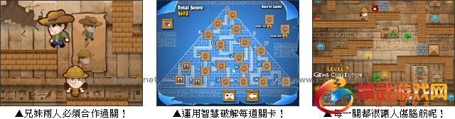 传说中的寻宝兄妹无意间发现了一座金字塔迷宫的藏宝图,传闻在顶端藏有非常大量的宝藏,兄妹两人为了帮父亲治病,必须进去冒险来取得这些宝藏,一路上困难重重,快来帮助兄妹两彼此配合,收集所有的宝藏,顺利到达顶端吧!