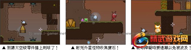 游戏操作:以滑鼠瞄準射击怪物,键盘方向键操作太空人飞行与拖曳道具。