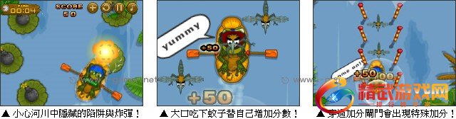 玩家在游戏中,扮演一位青蛙先生,为了替家人寻找更多的食物,可以让全家人安心过冬,于是选定一个晴朗的好天气,出发前往小溪寻找蚊子。然而在这个湍急的河流里,充满了危险的陷阱与漂流木,玩家们要靠着灵活操作,帮助青蛙先生抓到更多的虫子,顺利的回家过冬吧!
