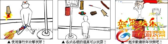 春节爆竹吓死人搞笑登场,每到新春小朋友们总是要齐聚在一起放鞭炮,甚至拿来吓吓经过的路人,这次玩家可以选择不同的鞭炮来对旁边的人恶作剧,有的可能是普通的鞭炮,也有得是很夸张的整人道具喔。赶快一起在春节里玩玩爆竹吧!