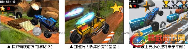 怪兽大脚车挑战赛来啰,选手们都已经热身完毕,现在就让我们来驾驶怪兽大脚车争夺比赛的冠军。玩家将驾驶着怪兽大脚车穿越障碍重重的道路,克服关卡中的各种障碍,并且还要小心的控制平衡,否则可是会使车子翻覆导致游戏重来喔。面对崎岖的路况,该如何驾驭才能顺利过关呢?这是要考验玩家的驾驶技巧,快来挑战看看吧!