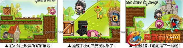 游戏操作:玩家 1 - 以键盘 A、D 键操作移动,W 键控制跳跃。玩家 2 - 以键盘左右方向键操作移动,上键控制跳跃,空白键进入下一关。