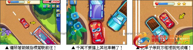 停靠卡通车是一款画面可爱,简单好操作的停车游戏,一开始玩家驾驶着卡通车,遵循箭头指标的方向前进,并且停到指定的位置即可过关,但在行驶的过程中可千万别与其他车辆撞出伤痕了,否则可是会减少生命值的喔,如果想要过关是要有高超的停车技术,现在就一起来挑战看看吧!