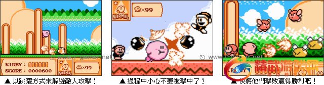 游戏中卡比来到神秘的梦之泉世界,继续他的大冒险之旅,在旅程上充满了许多惊奇与危险的事物,大家快来帮助他突破重重难关,沿路上玩家要躲避任何的危险并攻击怪物,最后到达出口才能够过关,随着关卡的提升,难度也会越来越难喔。大家一起与卡比完成他的冒险之旅吧!