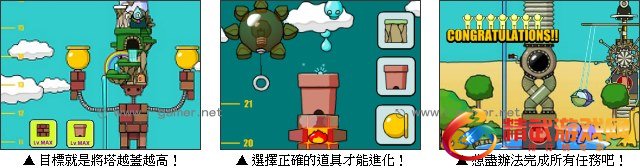 游戏操作:以滑鼠操作进行游戏,搭配右侧的道具来组建高塔。
