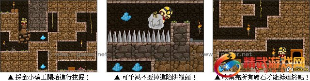 传说中在地表深处蕴藏许多珍贵的矿石,玩家将扮演矿工探险者,除了要面对众多的陷阱之外,还要考虑周围地形和宝石位置,再进行开挖动作,过程中随时注意游戏画面下方挖掘的次数,这可是有限制的,另外必须要收集完所有的宝石才能前进下一关喔。现在就让我们一起跟着小矿工一起到地表下挖掘宝藏吧!