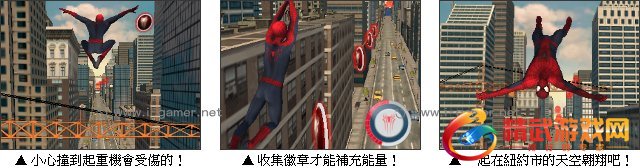 玩家将操作蜘蛛人在纽约市的天空进行巡逻,再过程中玩家必须闪避在空中的起重机以免受伤,要注意在蜘蛛丝是有限制的,所以必须蒐集散落在各地的能量才可以补充,否则可是会摔落在地上的喔。现在就让我们和蜘蛛人一起在纽约市进行巡逻吧!