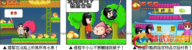 由知名电视节目《爸爸去哪儿》改编的冒险游戏。村长交代给五个可爱萌娃一项艰巨任务,他们要沿路上互相合作收集所有的水果,并且抵达终点交给村长,才能顺利过关,另外在过程中,可别触碰到猴子喔。快来一起和他们完成村长交代的任务吧!