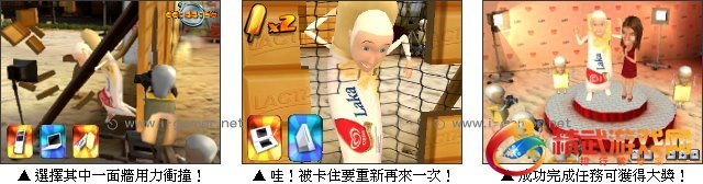 雪糕制造公司在电视台举办了冒险闯关的活动,奖品相当的丰富,有智慧型手机、笔记型电脑,还有许多游戏机,当然也少不了雪糕跟霜淇淋了,感觉相当的吸引人,一起来瞧瞧吧!游戏一共有四关,参赛者必须扮成笑果十足的雪糕人,选择冲撞其中一面墙,若是猜对了就可以获得奖品。快来挑战一下趣味搞笑的雪糕人大闯关吧!