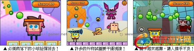海绵宝宝被困在海洋中的橡皮胶上,必须敏捷的将空中落下的物品全部都给弹回去,否则橡皮胶被击破后可是会招来鲨鱼的。游戏中玩家只需要控制档板的移动,对準掉落的小球即可,但随着等级的提升,难度也会越来越高,无法预料的小球会从各处飞奔而来,考验着你的反应力,另外还有许多不同的角色及场景等着你来解锁,马上就来挑战一下吧!