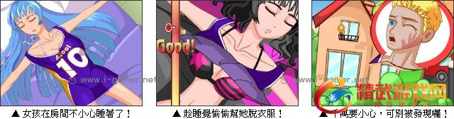 制服别乱脱是一个搞怪趣味游戏,游戏中一对情侣,男生趁着对方睡着的时候,想要去脱掉衣服偷看她,并且要在时间内满足你自己偷窥的慾望,衣服要慢慢脱掉,才可以看得越清楚,但千万别被她发现你在偷看,否则她可是会赏你一巴掌的喔!