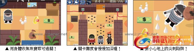 四个各具特殊才艺的盗贼组成了一个团伙,他们盯上了一家珠宝城,想要偷窃里面的所有宝物,由于四名盗贼所会的特殊能力都不相同,必须他们彼此之间的配合,解决各种难题,盗取所有的珠宝,才能顺利通关哦。快来帮助他们把号称藏有全世界珠宝的宝库搬空吧!