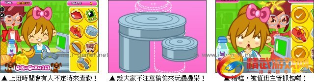 游戏操作:以滑鼠操作进行游戏,如果老板来了要赶快关掉视窗喔。