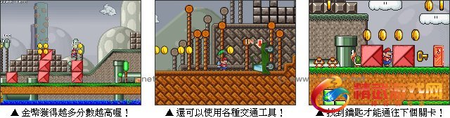 游戏操作:以键盘左右方向键移动,上键跳跃,下键下管道,空白键使用交通工具 / 钥匙。