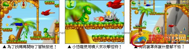 恐龙妈妈和一群刚生出的小恐龙蛋,原本在雪山中过着安逸幸福的生活,突然某天一颗小恐龙蛋不小心掉落到原始森林里,面对如此陌生又危机重重的森林,牠必须努力寻找回家的路才能再见到心爱的恐龙妈妈,现在就让我们来帮助小恐龙吧!
