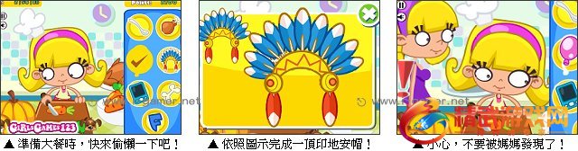 感恩节要到了,每个家庭都需要準备许多美味的食物,小女孩正在帮妈妈制做感恩节晚餐,但调皮的她三不五时想要摸鱼偷懒一下,快趁妈妈不注意时完成所有偷懒动作吧。小心不要被妈妈发现了哦,不然可是会被挨骂的!