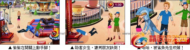 小顽童来到游乐场里看到一对情侣亲亲我我,真是令人眼红,决定要来好好的整一整他们。在时间限定内完成动作,利用游戏里的提示,动作点击画面里的物品触发事件,看看这个小家伙在游乐场里是怎么整蛊这对可怜情侣的!