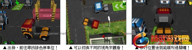 游戏操作:以键盘方向键操作卡车移动方向,数字键 1 ~ 4 键换视角,空白键开始游戏。