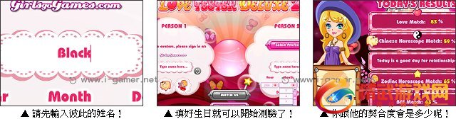 游戏操作:以键盘输入你和心仪对象的名字及生日进行测试。