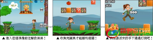 游戏操作:以键盘左右方向键操作角色移动,上键跳跃,下键钻入石柱 / 选关。