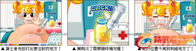 小美这次将化身为俏丽可爱的小护士,在打针前小美会先拍打病患的屁股留下手印,再依照手印的位置给病患打针,当针筒的药用完时别忘了要补充药剂喔。快来跟小美护士一起来学打针吧!
