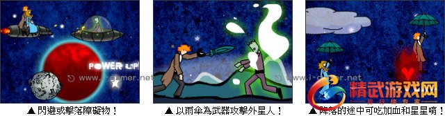 离开地球的画面独具风格,游戏主题也很吸引人,每个场景似乎都有不同的游戏模式。在一顿浪漫晚餐后这对恋人决定乘坐他们的火箭到外太空遨游一番,没想到这趟旅程意外成为了一场冒险之旅。原来外太空充满了危险,不仅要闪避掉落的殒石,还要小心外星人,你们必须消灭掉所有的敌人,才能平安的回到地球!