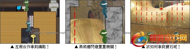 P1:以键盘A、D键操作主角移动,W键跳跃,S键趴下,空白键开始游戏,在门口处按空白键进门,P键暂停。