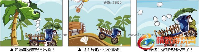 又到了乌龟的生产季节,树上有好多的乌龟蛋等着被运送。玩家要控制卡车将所有的乌龟蛋安全运到目的地即可过关,注意沿路地面颠坡可别把蛋摔破了,现在就快来挑战看看吧!