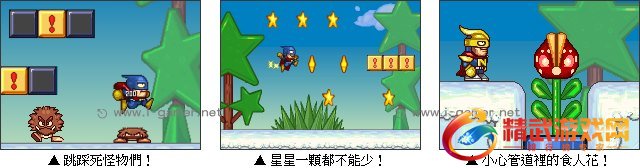 氮气超人前往玛莉欧的世界里準备来一场大冒险,却误闯到了冰天雪地的南极,玩家必须帮助氮气超人克服难关,闪避踩死怪物,收击沿路星星,安全的到达目的地即可进入下一关!