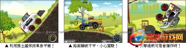 疯狂挖土机2来啰,这次玩家要操作这台挖土机清除路面杂物。行经路线曲折且路面不平,必须小心驾驶这台挖土机,随时控制车身平衡,且注意引擎是否过热,否则一不小心车子可是会爆炸唷!