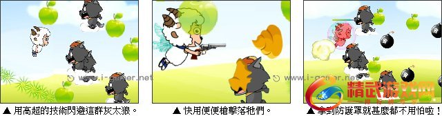 灰太狼又来欺负羊村了,玩家要协助喜羊羊赶跑牠们。只是战斗的地点在天空,不会飞的喜羊羊只能靠玩家努力画下跳跃线前进,拿到任务指定的苹果才能过关,快来帮助喜羊羊击退这些笨狼吧!