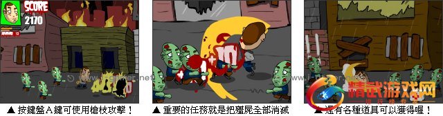 游戏操作:以键盘方向键控制人物移动,A键射击,S键攻击。