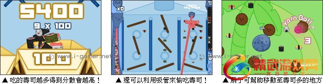 游戏操作:以滑鼠操作进行游戏,点击左键让寿司猫下来吃东西。