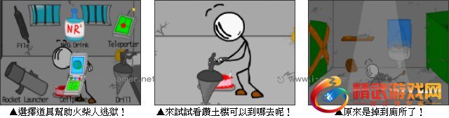 火柴人为什么想逃狱呢?因为被关在监狱里的他是个无辜的犯人,还常常被狱中的警察欺负,他的处境还真是可怜,所以他的好朋友很想帮助他,还替火柴人送来了一个神祕的盒子,里面有六件物品,快帮他挑一样道具逃离监狱吧!点选不同的道具,会有不同的故事结局,快来试试唷!