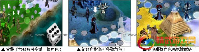 游戏操作:以滑鼠操作,点击骰子进行抽取步数,每次骰子摇到 6 点的时候可多派出一个角色。