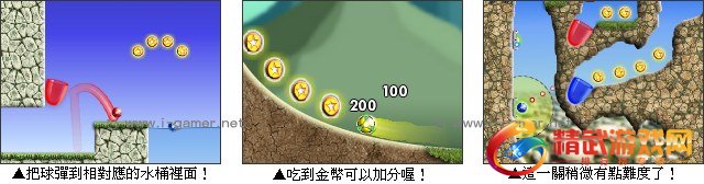 水桶球是一款有趣的弹球游戏,你只需要把不同颜色的小球射到相同颜色的水桶即可。使用滑鼠点击球身拉出一条抛物线使他们弹射,要把球放到一样颜色的水桶才能过关,画面中有金币吃到可以加分,难度会一直提升,你有没有办法过的了全部的关卡呢!