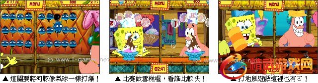 由 Nick.com 创作的海棉宝宝系列游戏,比奇堡游戏园正在举办嘉年华会,向来爱热闹的海绵宝宝与派大星当然不会错过。游戏提供九项园游会常见的娱乐设施与两种 (单、双打) 游戏模式,每个娱乐设施都有不同的玩法,喜欢海棉宝宝的玩家别错过喔!